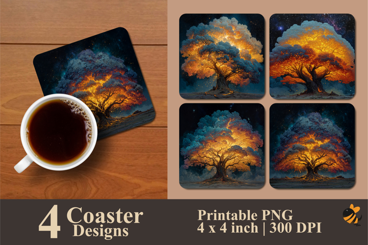 Coaster Sublimation Design Coaster Template Coaster Design Square Coaster Coaster Sublimation Design Coaster Sublimation Vintage Coaster Modern Coaster Night Sky Tree Coaster Sublimation Design