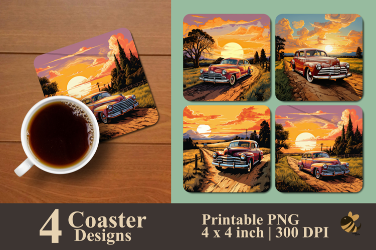Coaster Sublimation Design Coaster Template Coaster Design Square Coaster Coaster Sublimation Design Coaster Sublimation Vintage Coaster Modern Coaster Golden Sunset Old Car Coaster Sublimation Design