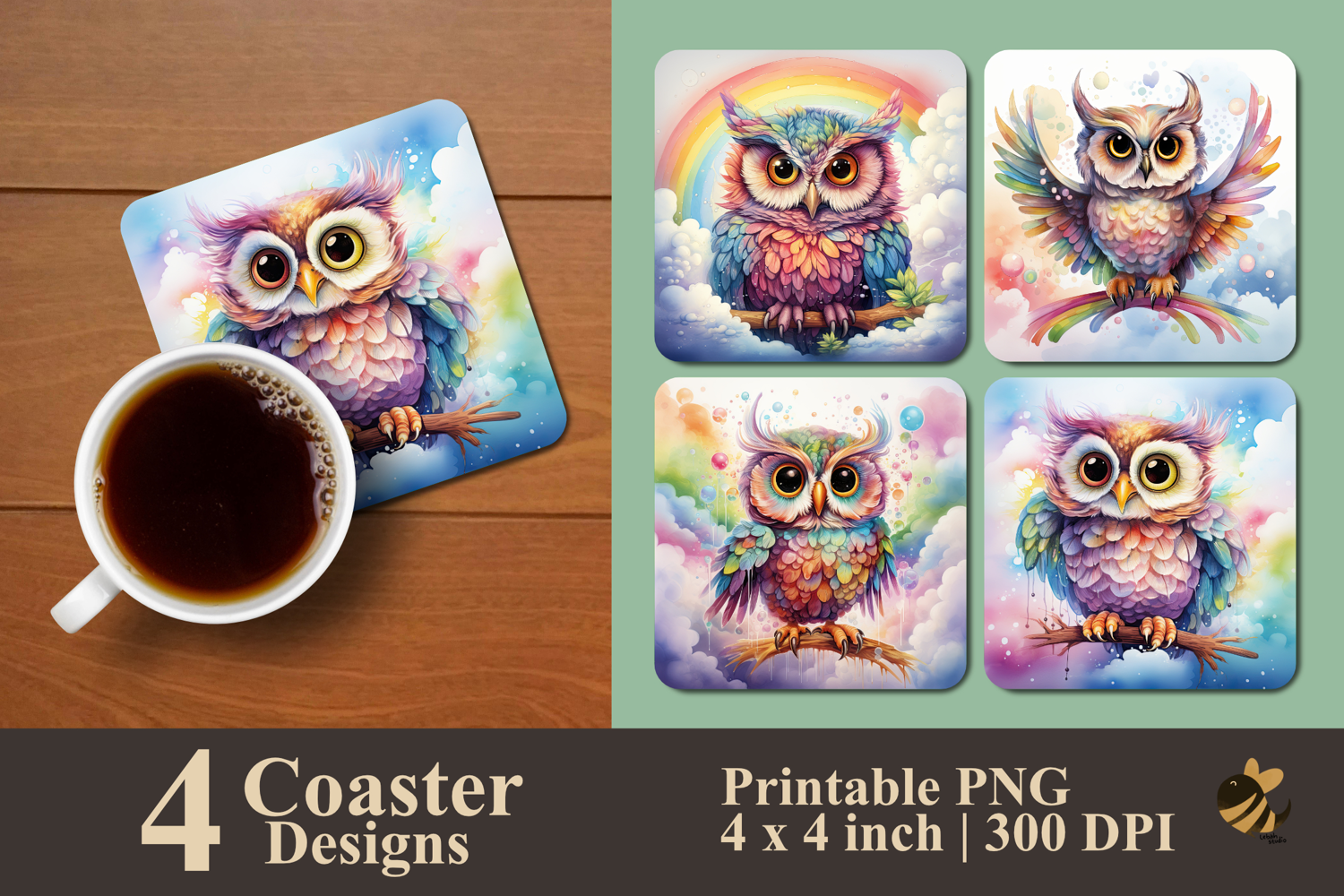 Similar Design Products to Owl With Rainbow Feathers Coaster Sublimation Design