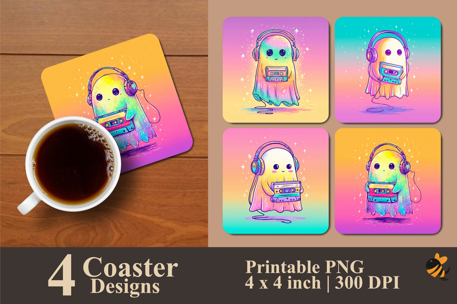 Coaster Sublimation Design Coaster Template Coaster Design Square Coaster Coaster Sublimation Design Coaster Sublimation Vintage Coaster Modern Coaster Ghost Listening To Music Coaster Sublimation