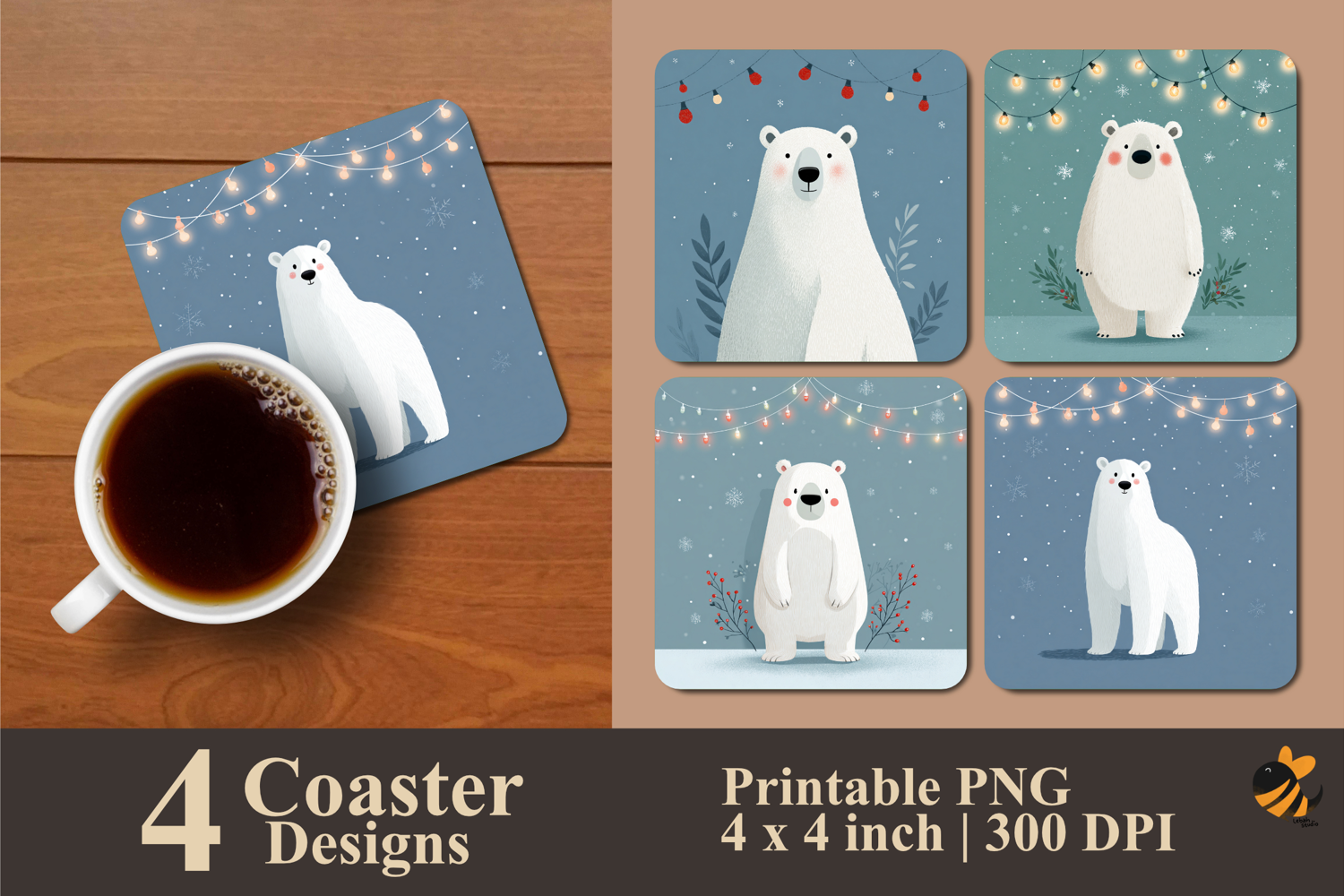 Coaster Sublimation Design Coaster Template Coaster Design Square Coaster Coaster Sublimation Design Coaster Sublimation Vintage Coaster Modern Coaster Polar Bears Coaster Sublimation Design