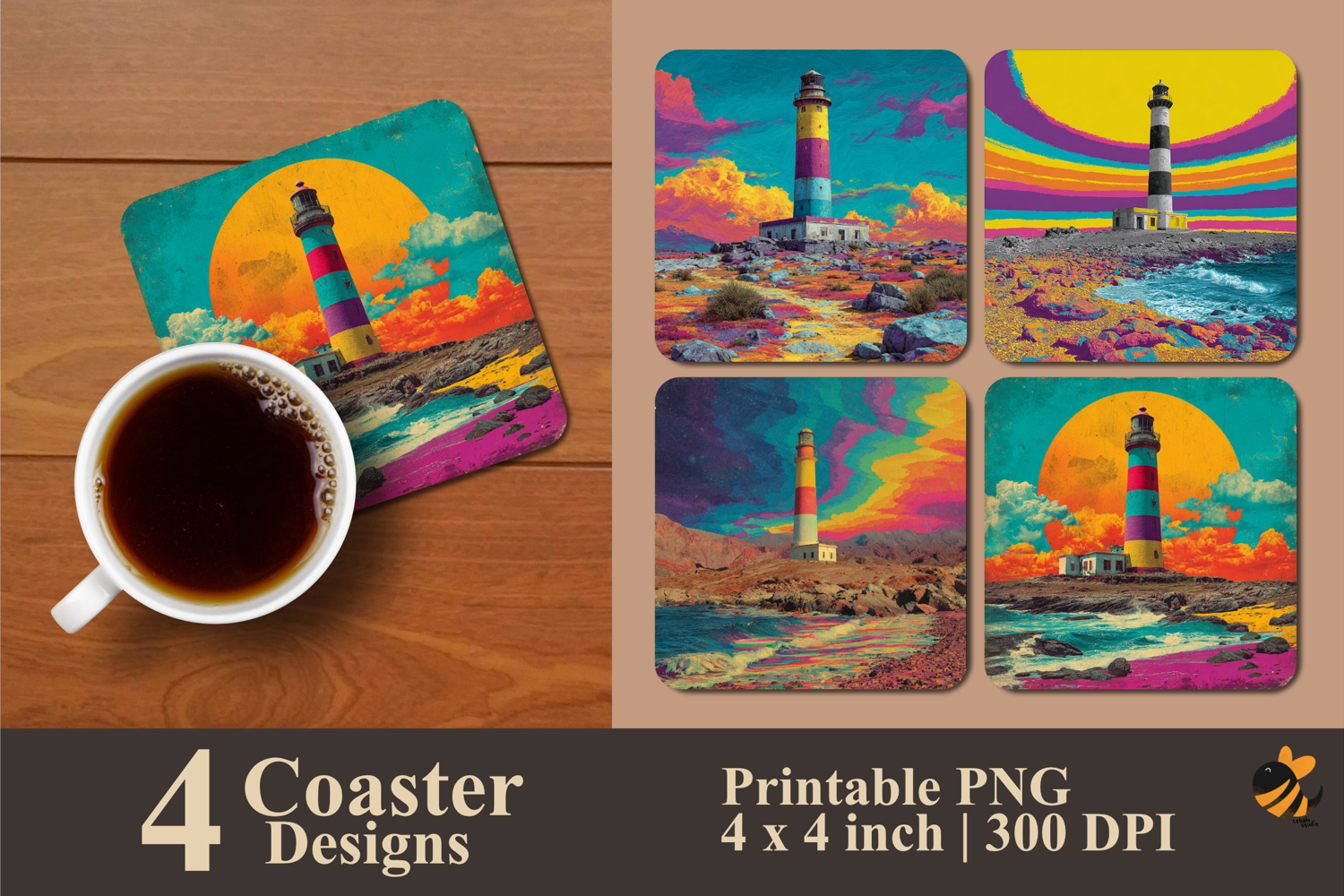Coaster Sublimation Design Coaster Template Coaster Design Square Coaster Coaster Sublimation Design Coaster Sublimation Vintage Coaster Modern Coaster Colorful Lighthouse Coaster Sublimation Design