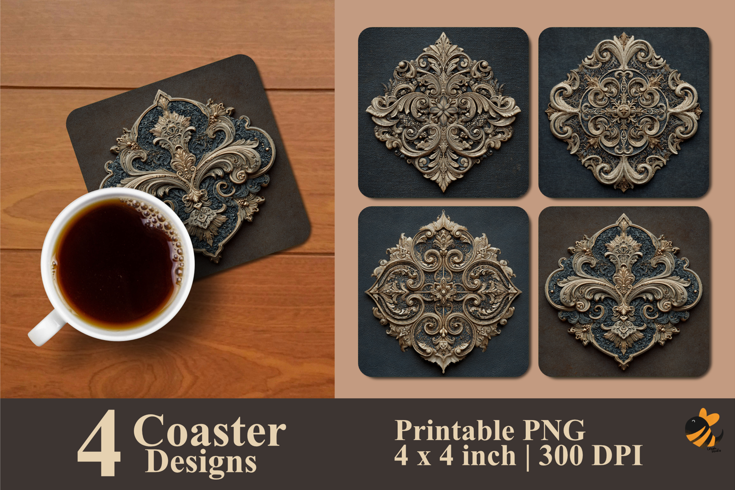 • 4 Coaster design about 4x4 inches around 1200x1200 px PNG files 300 DPI