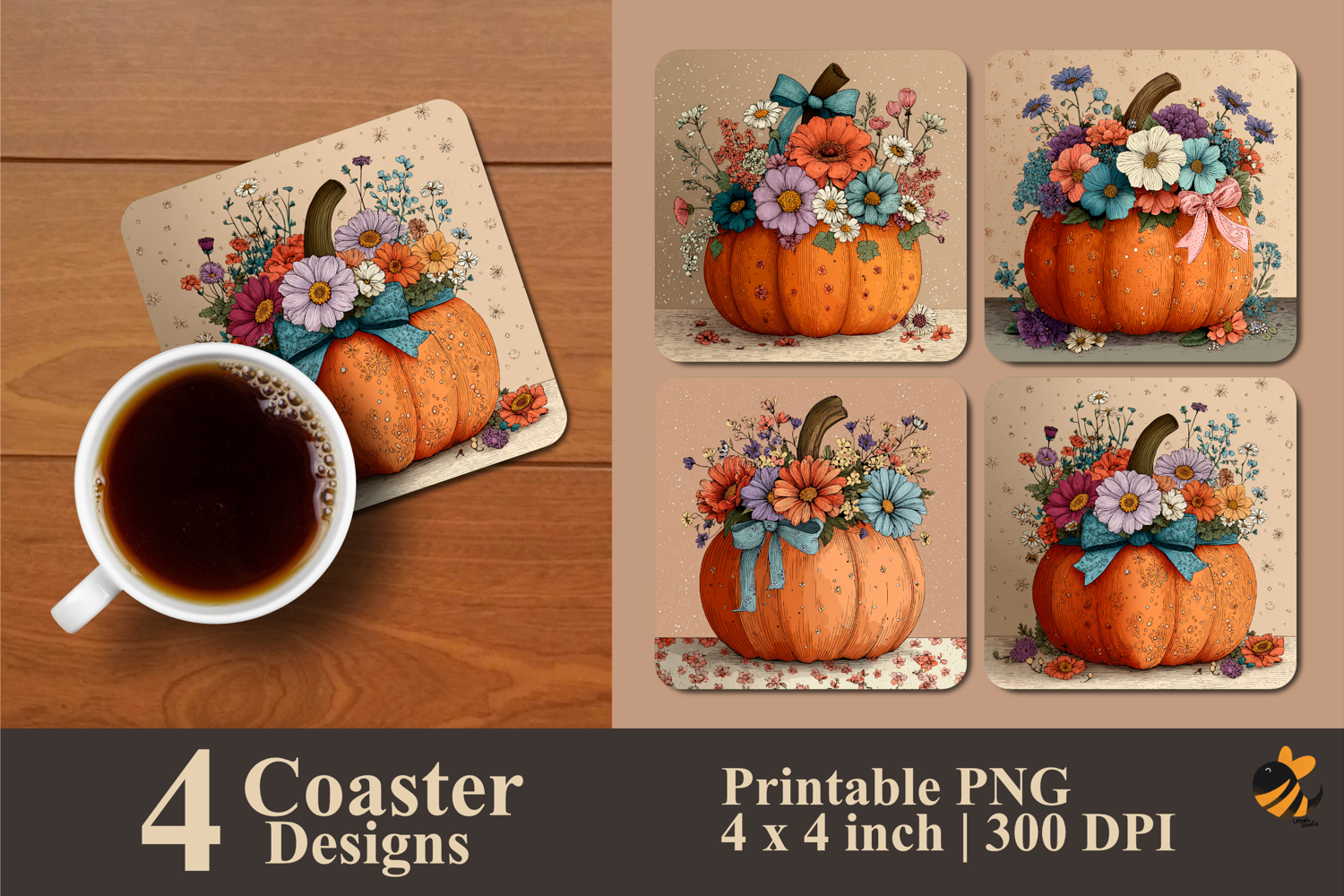 Pumpkin Flowers Coaster Sublimation Design example image 1