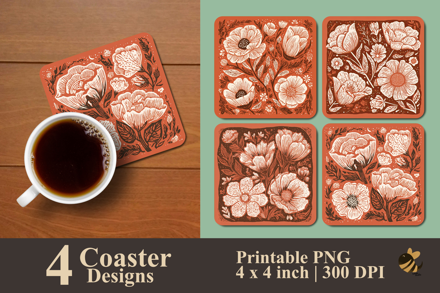• 4 Coaster design about 4x4 inches around 1200x1200 px PNG files 300 DPI