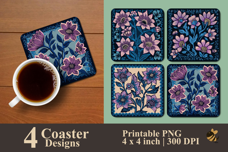 • 4 Coaster design about 4x4 inches around 1200x1200 px PNG files 300 DPI