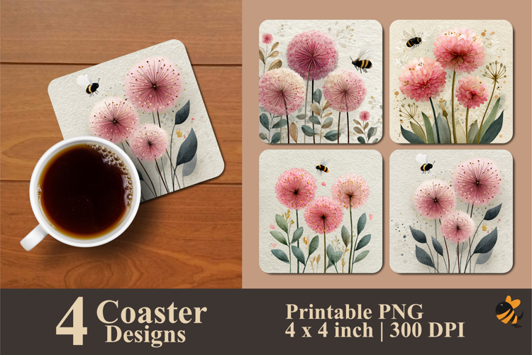 Coaster Sublimation Design Coaster Template Coaster Design Square Coaster Coaster Sublimation Design Coaster Sublimation Vintage Coaster Modern Coaster Flying Bee Flower Coaster Sublimation Design