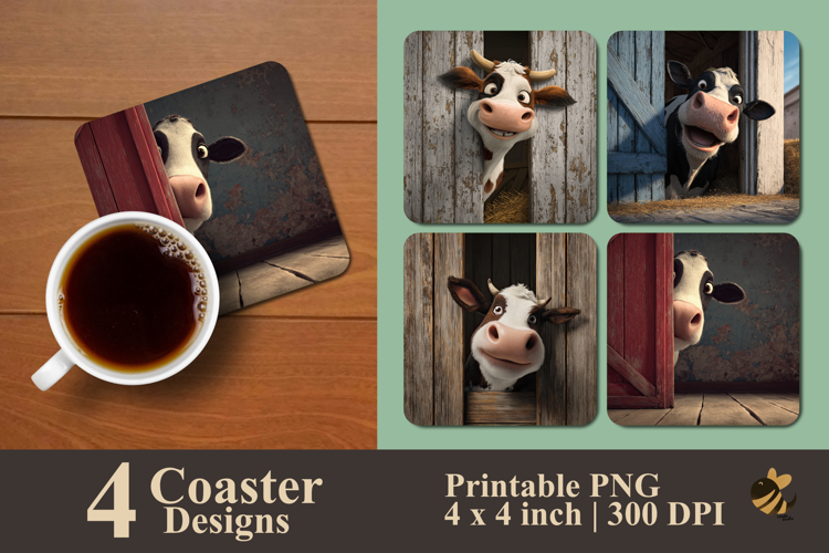 Coaster Sublimation Design Coaster Template Coaster Design Square Coaster Coaster Sublimation Design Coaster Sublimation Vintage Coaster Modern Coaster Happy Cow Peeking Coaster Sublimation Design
