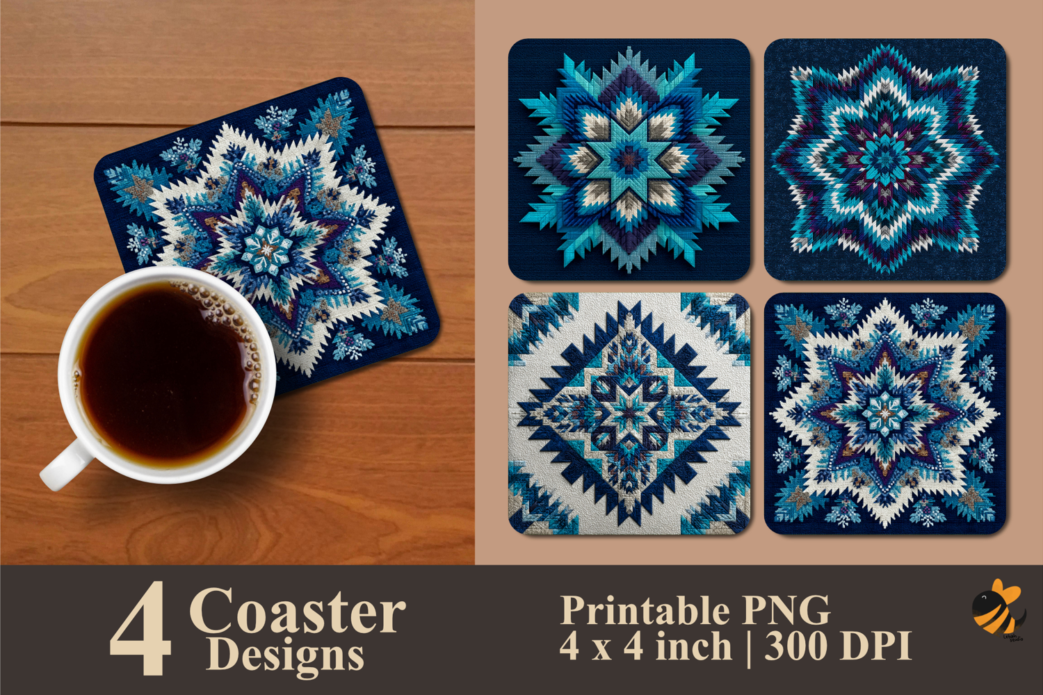 • 4 Coaster design about 4x4 inches around 1200x1200 px PNG files 300 DPI