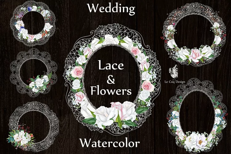 Perfect hand painted Lace Frames illustrations for all designs, wedding invitations, websites, blogs. cards, DIY designs...This set includes: