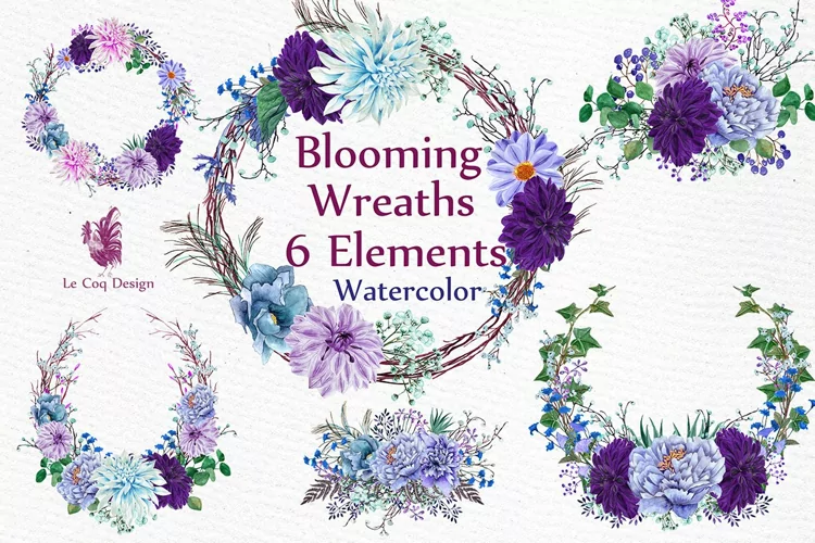 Similar Design Products to Watercolor Purple Wreaths Clipart