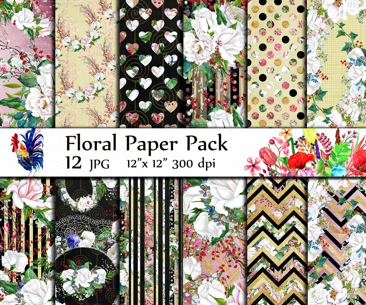 Floral Digital Paper Floral Pattern Watercolor Papers Kraft Paper Floral Papers Shabby Chic Papers Rose Gold Paper Wedding Background Flower Digital Paper Invitation Papers