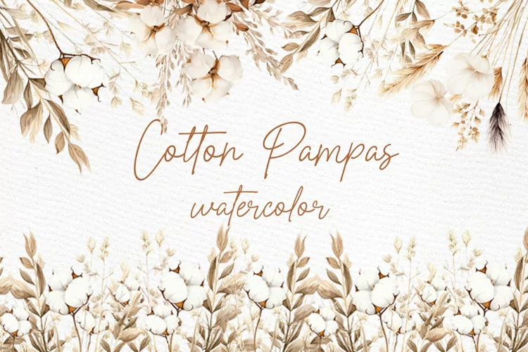 Cotton Clipart Boho Pampas Grass Cotton Branches Cotton Png
