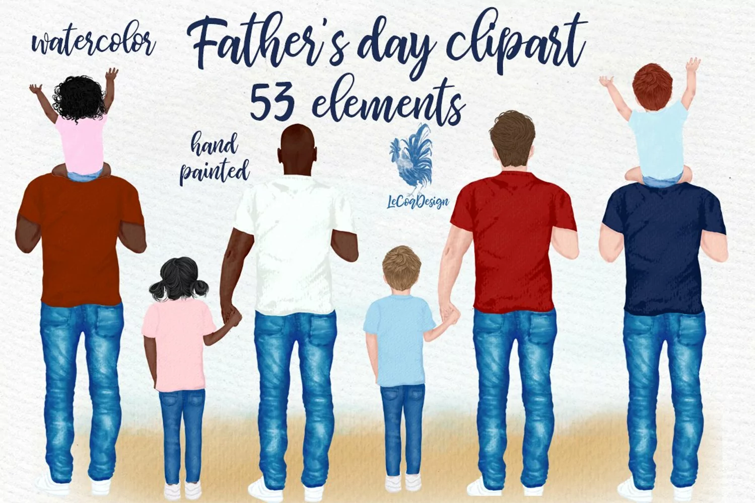 This is a great set of high-quality hand-painted watercolor father and children clipart. Perfect illustrations for all designs, Christmas cards, websites, thank you gifts, blogs. cards, DIY designs...
