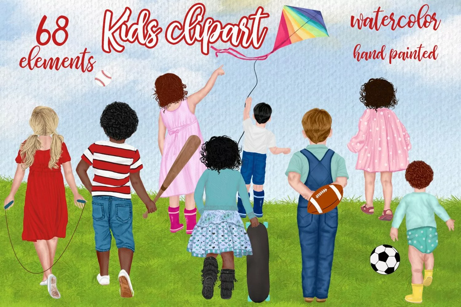 This is a great set of high-quality hand-painted watercolor kids clipart. Perfect illustrations for all designs, Christmas cards, websites, thank you gifts, blogs. cards, DIY designs...