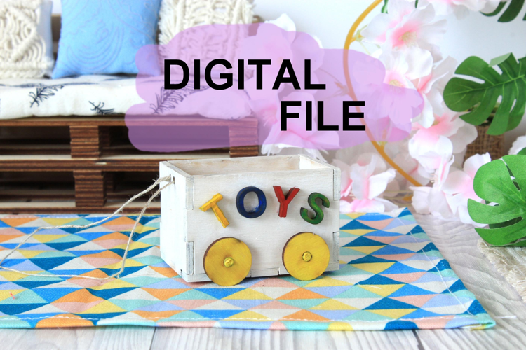 Miniature toy box laser cut download file. Dollhouse nursery storage on wheels plywood make myself DIY vector file instant digital construction set