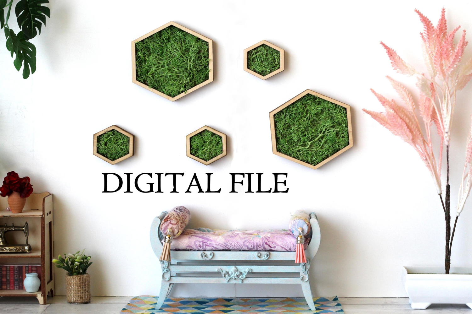 Miniature moss wall art digital download file. Dollhouse green garden vector file laser cut diorama room box hanging make myself kit craft