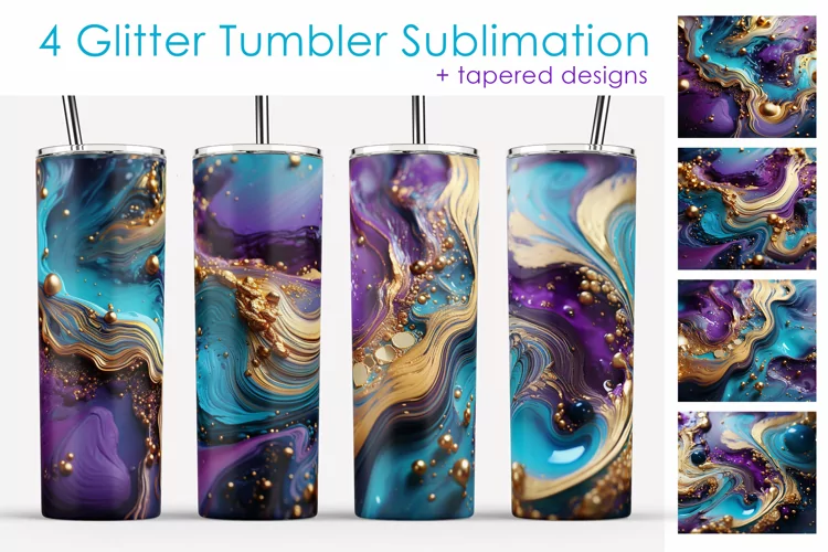 4 of Glitter Sublimation Acrylic paintsDesign Bundle for tumblers 20oz
