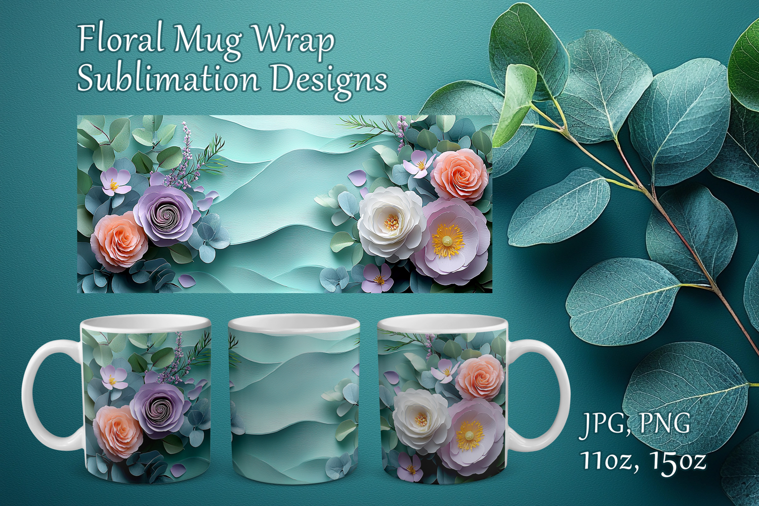 Floral Mug Design Sublimation, Paper Flowers Mug Cup Wrap