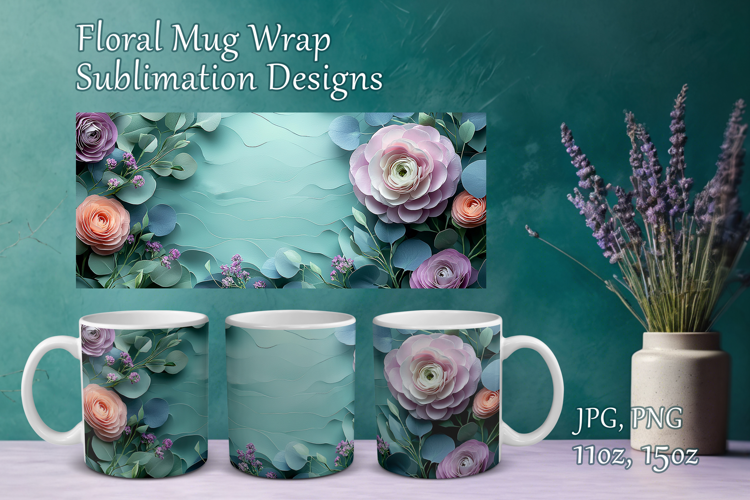 Similar Design Products to Flowers Design Mug Sublimation. Paper Floral Cup Mug Wrap