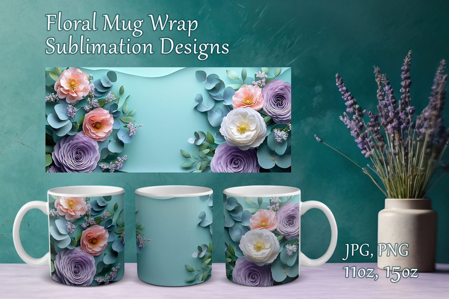 Flowers Design Mug Sublimation. Paper Floral Cup Mug Wrap