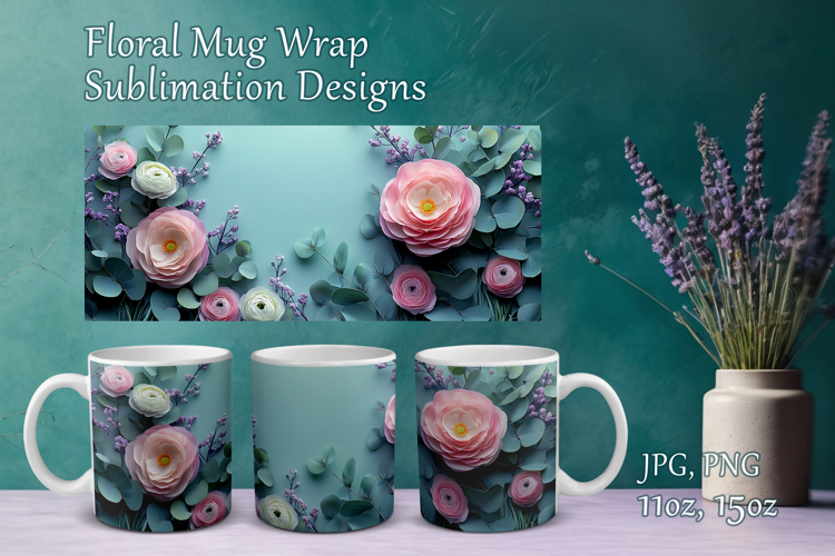 Flowers Design Mug Sublimation. Paper Floral Cup Mug Wrap