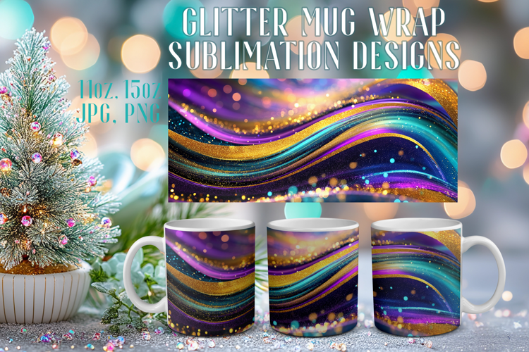 Add a touch of elegance and luxury to your favorite mug with this Gold Waves Glitter Mug Wrap Design!