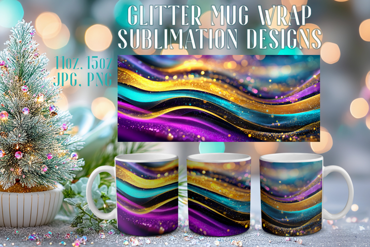 Add a touch of elegance and luxury to your favorite mug with this Gold Waves Glitter Mug Wrap Design!