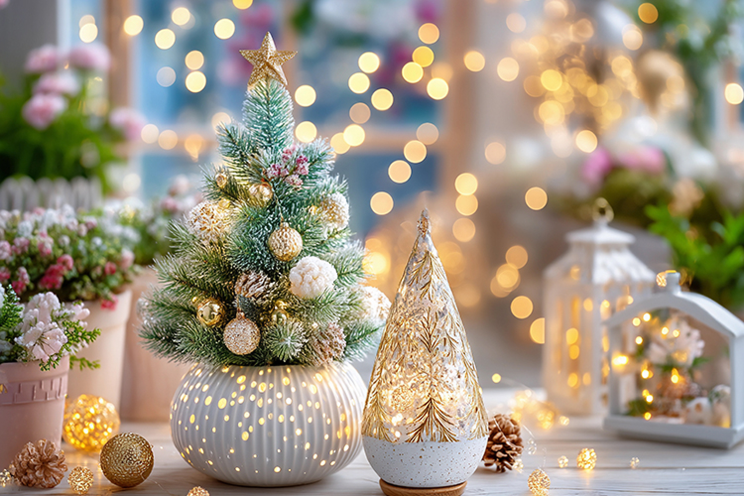 Bright bokeh background creates warm holiday atmosphere, perfect for seasonal celebration and design.