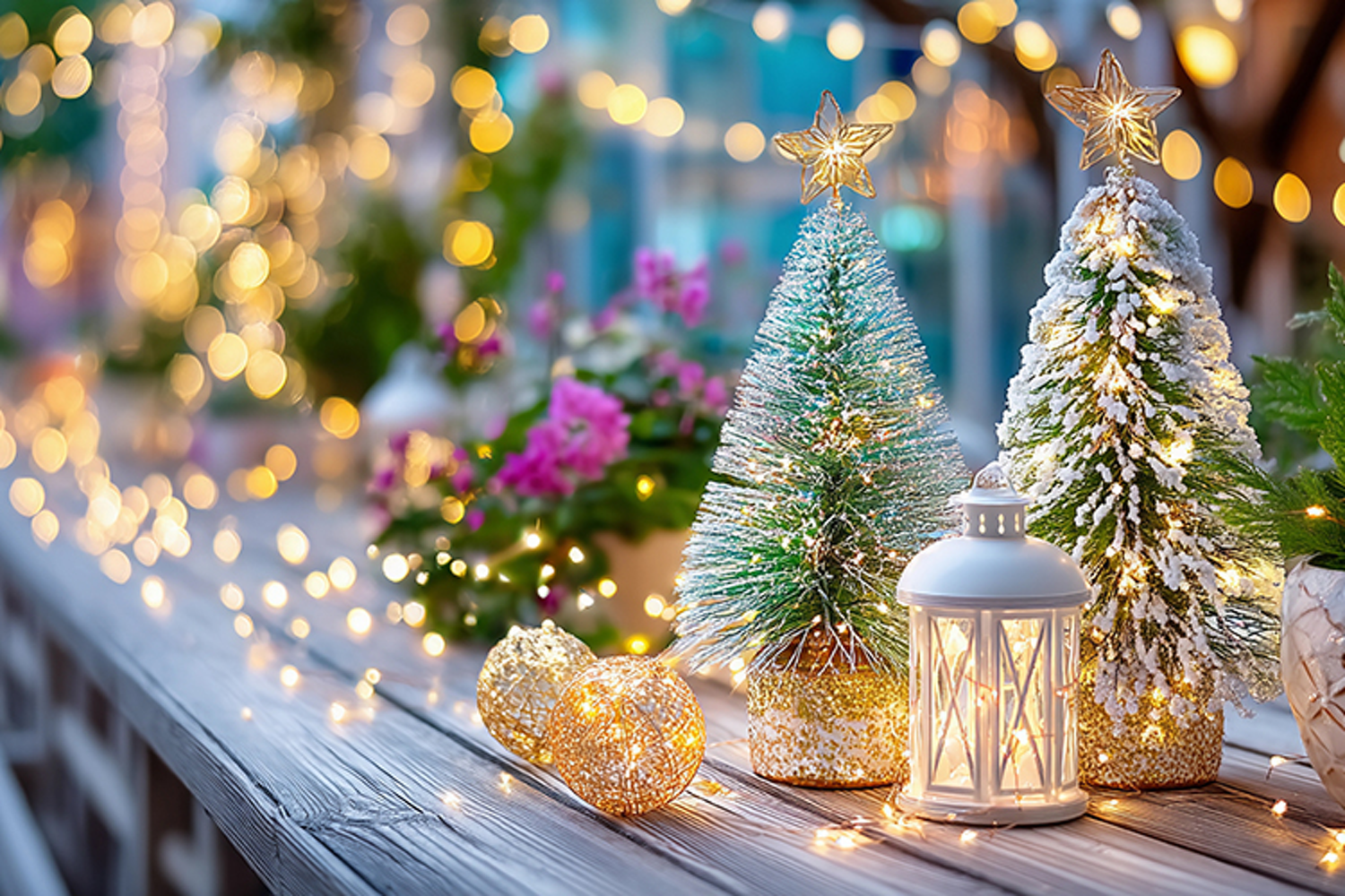 Bright bokeh background creates warm holiday atmosphere, perfect for seasonal celebration and design.