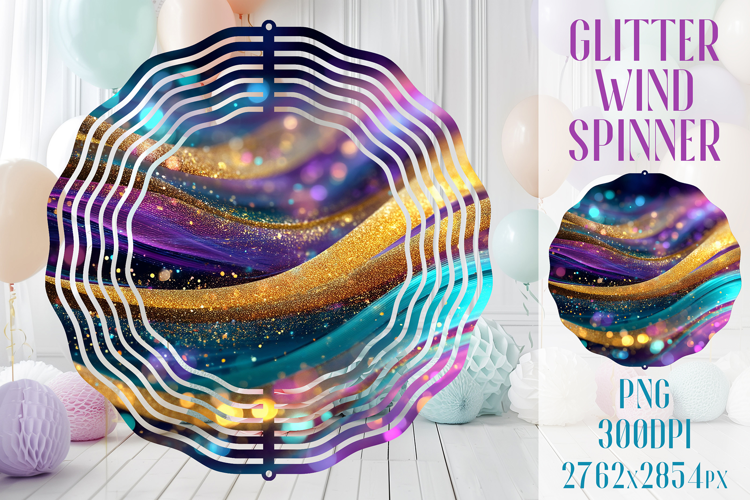 Glitter Wind Spinner Sublimation|Colorful Gold Waves Spinner example image 1