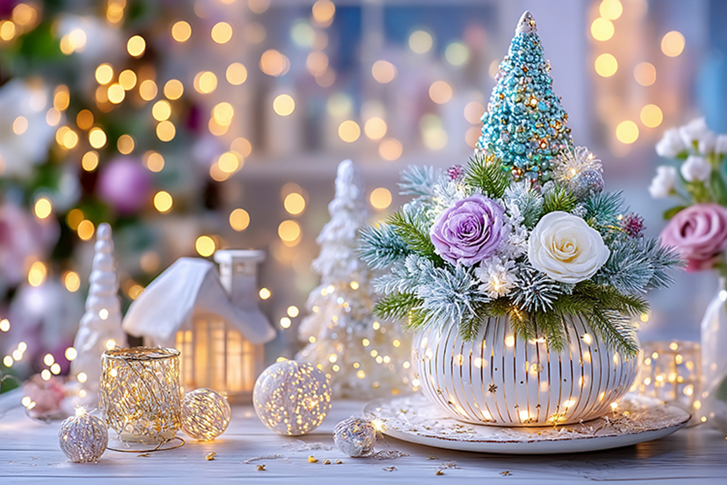 Bright bokeh background creates warm holiday atmosphere, perfect for seasonal celebration and design.