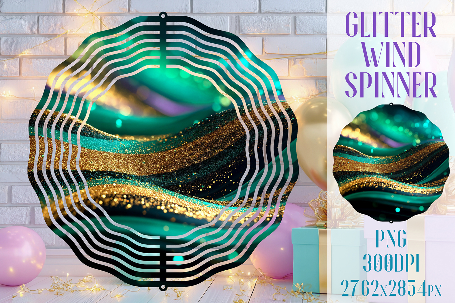 Glitter Wind Spinner Sublimation. Emerald Gold Waves Spinner