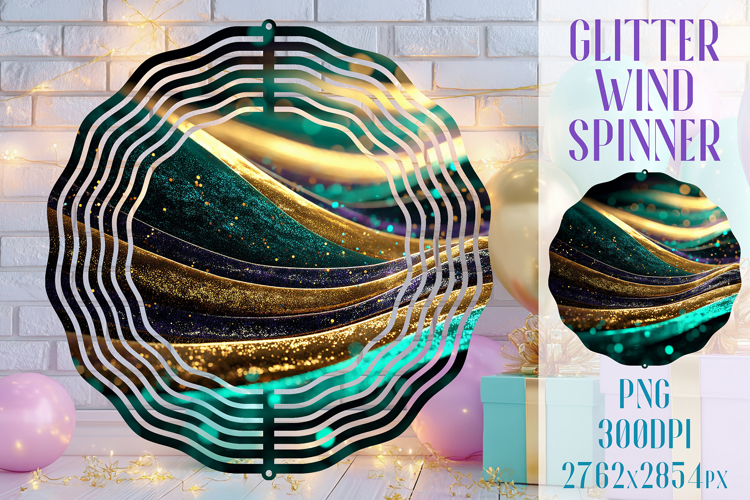 Glitter Wind Spinner Sublimation. Emerald Gold Waves Spinner