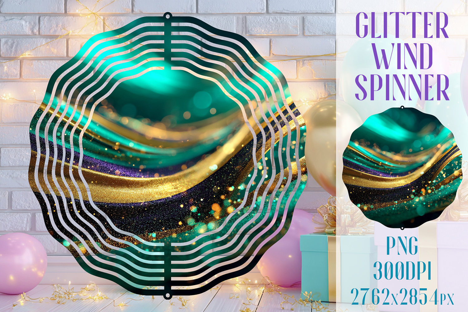 Glitter Wind Spinner Sublimation. Emerald Gold Waves Spinner