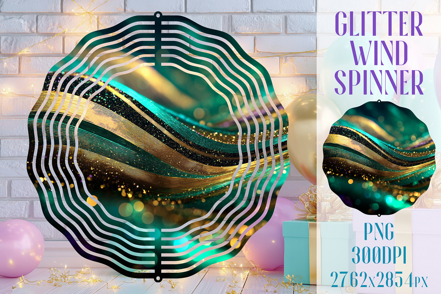Glitter Wind Spinner Sublimation. Emerald Gold Waves Spinner