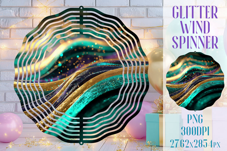 Glitter Wind Spinner Sublimation. Emerald Gold Waves Spinner