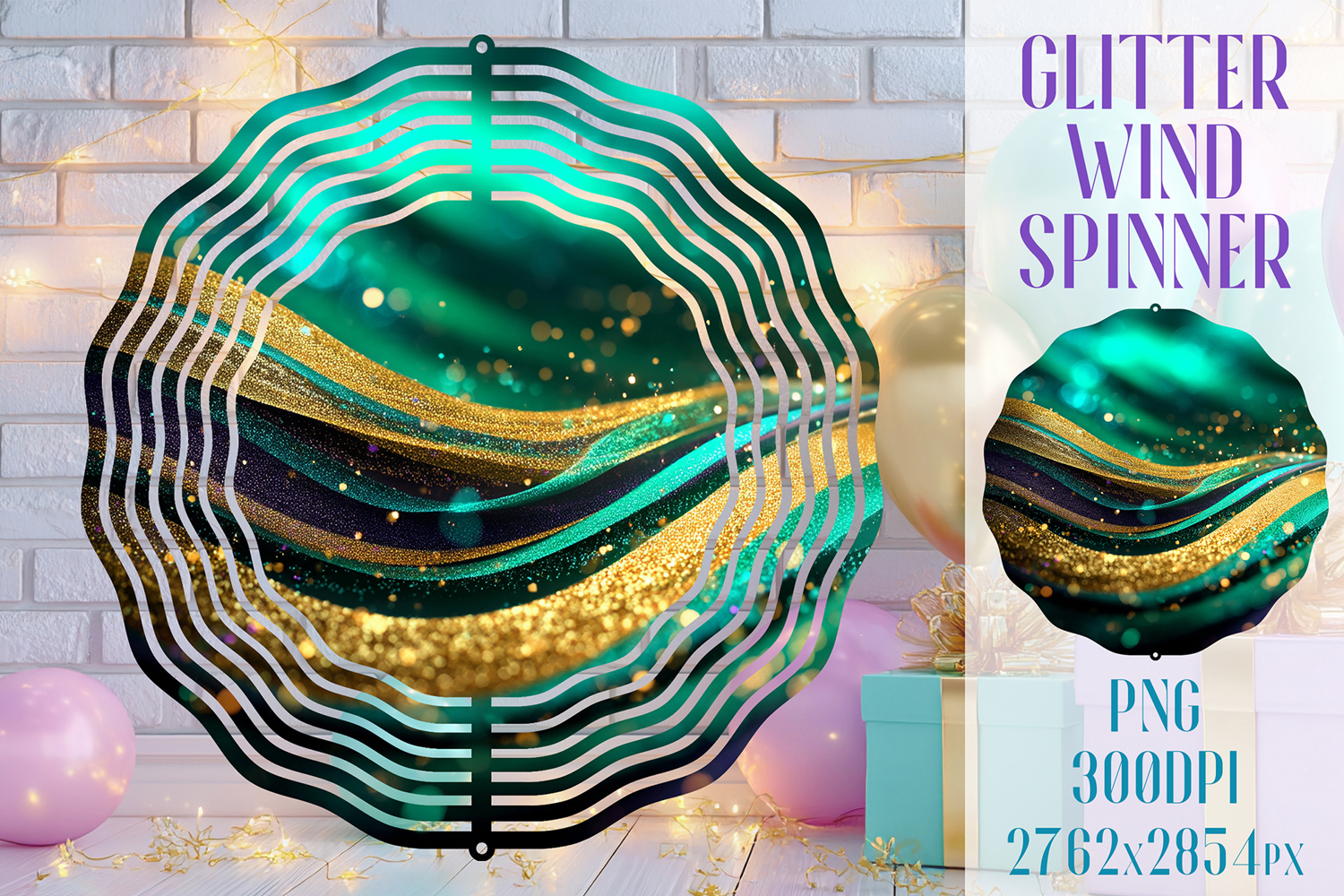 Glitter Wind Spinner Sublimation. Emerald Gold Waves Spinner