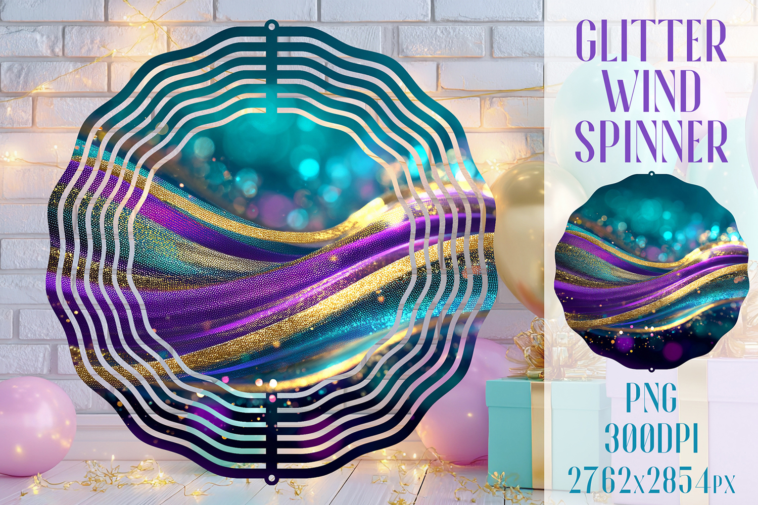 Glitter Wind Spinner Sublimation. Teal Violet Golden Waves