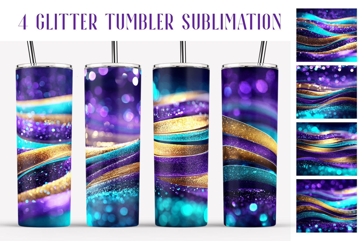 4 of Glitter Sublimation Design Bundle for tumblers 20oz 3v