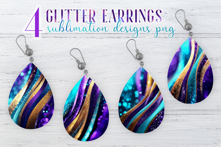 Earrings Earring Teardrop Earring Earring Templates Sublimation Earrings Drop Earring Png Glitter Earring Png Glitter Earring Glitter Sublimation Png Teal Violet Golden Gold Wave Stripes Earrings