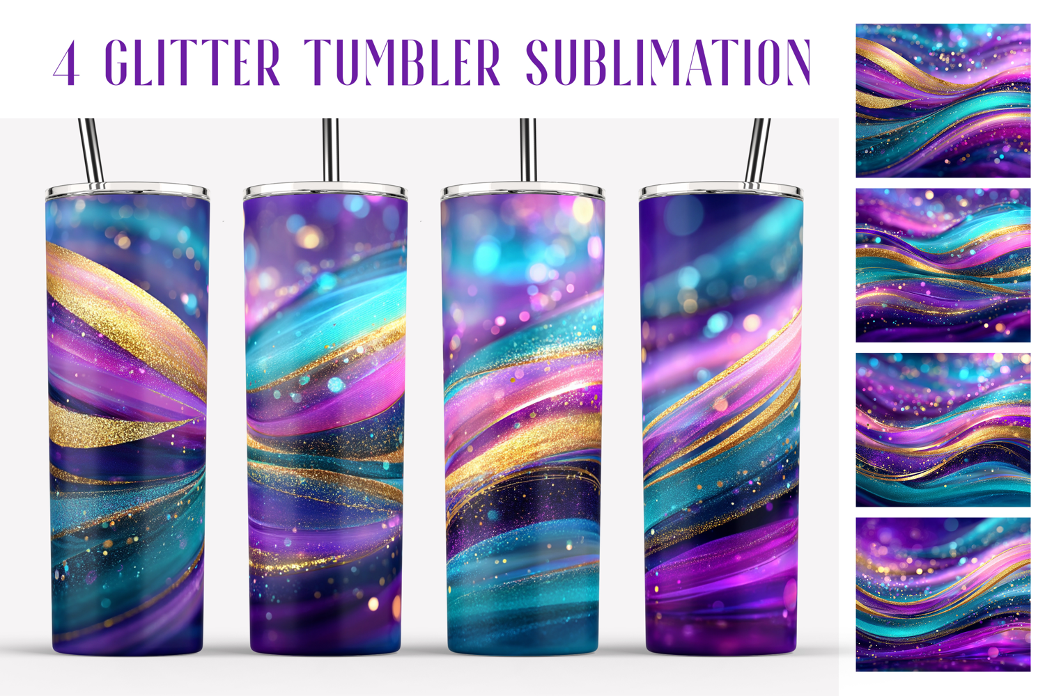 4 of Glitter Sublimation Design Bundle for tumblers 20oz 15v