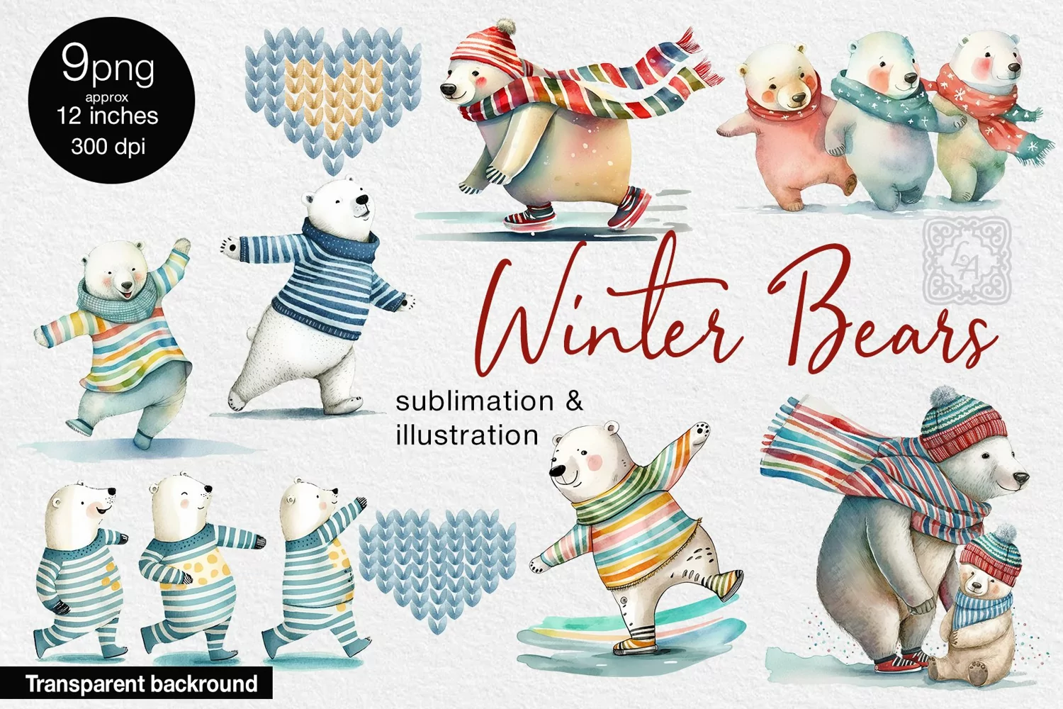 Winter Bears 9 Watercolor Cliparts PNG sublimation