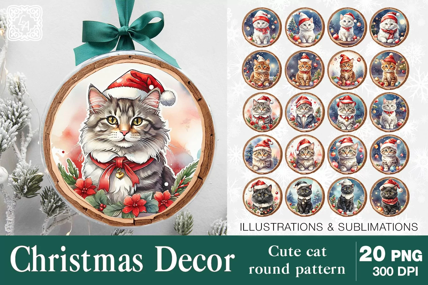 Christmas Decor. Cute Cat Round Pattern 20 PNG sublimations