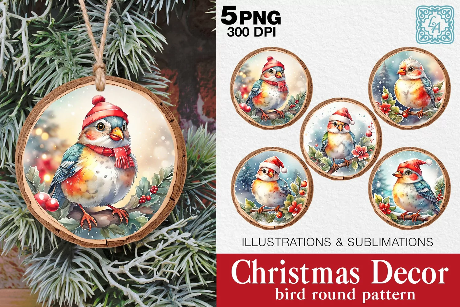 Christmas Decor. Bird Round Pattern 5 PNG sublimations example image 1