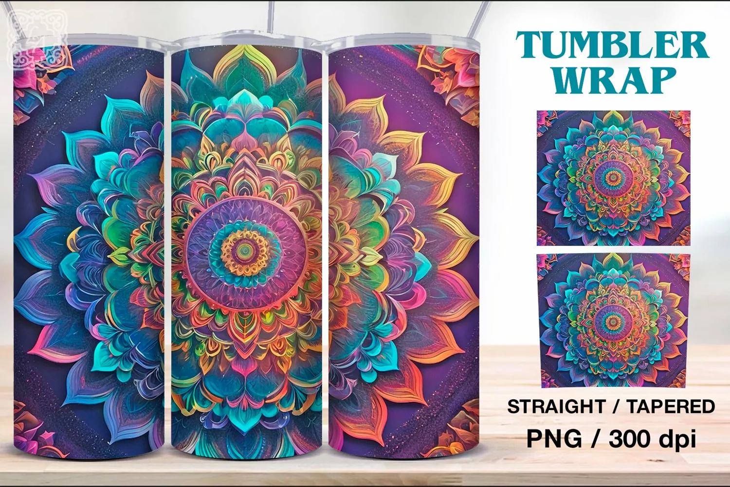 Rainbow Mandala Tumbler Sublimation, 20 oz Tumbler Wrap example image 1