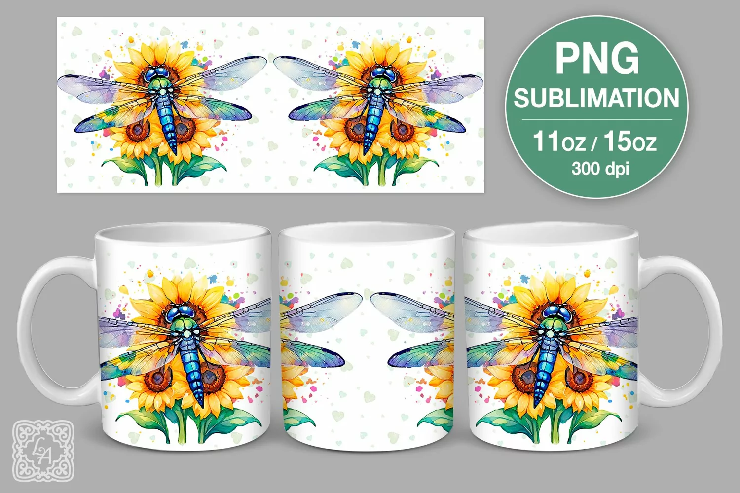 Dragonfly & Sunflowers mug PNG sublimation 11 & 15 oz example image 1