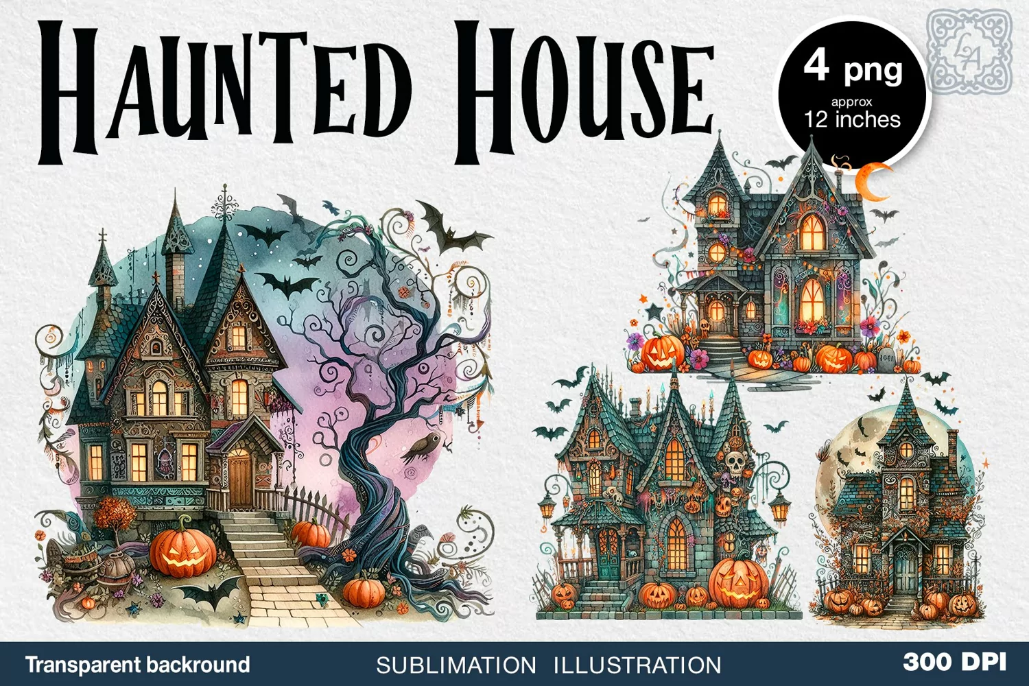 Scrapbooking Set Halloween Watercolor Halloween House Halloween Sublimation Watercolor Sublimation Spooky Sublimation Scary Sublimation Hoodie Sublimation Hoodie Halloween Haunted House Watercolor