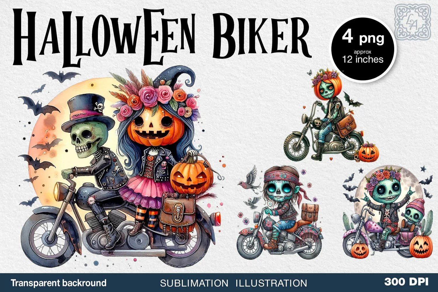 Watercolor Halloween Biker. PNG sublimation example image 1