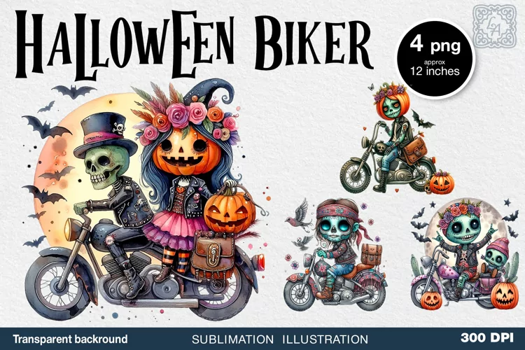 Halloween Watercolor Halloween Sublimation Watercolor Sublimation Cute Zombie Spooky Halloween Sublimation Halloween Zombie Girl Zombie Doll Biker Sublimation Doll Sublimation Zombie Biker